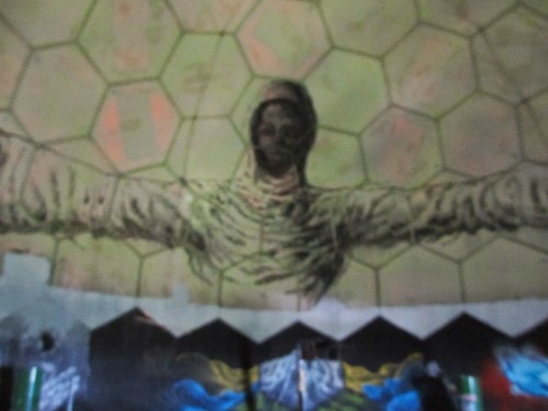 As you might have guessed, this was also covered in graffiti…the largest of which being two men whose eyes seem to follow you around the globe.
